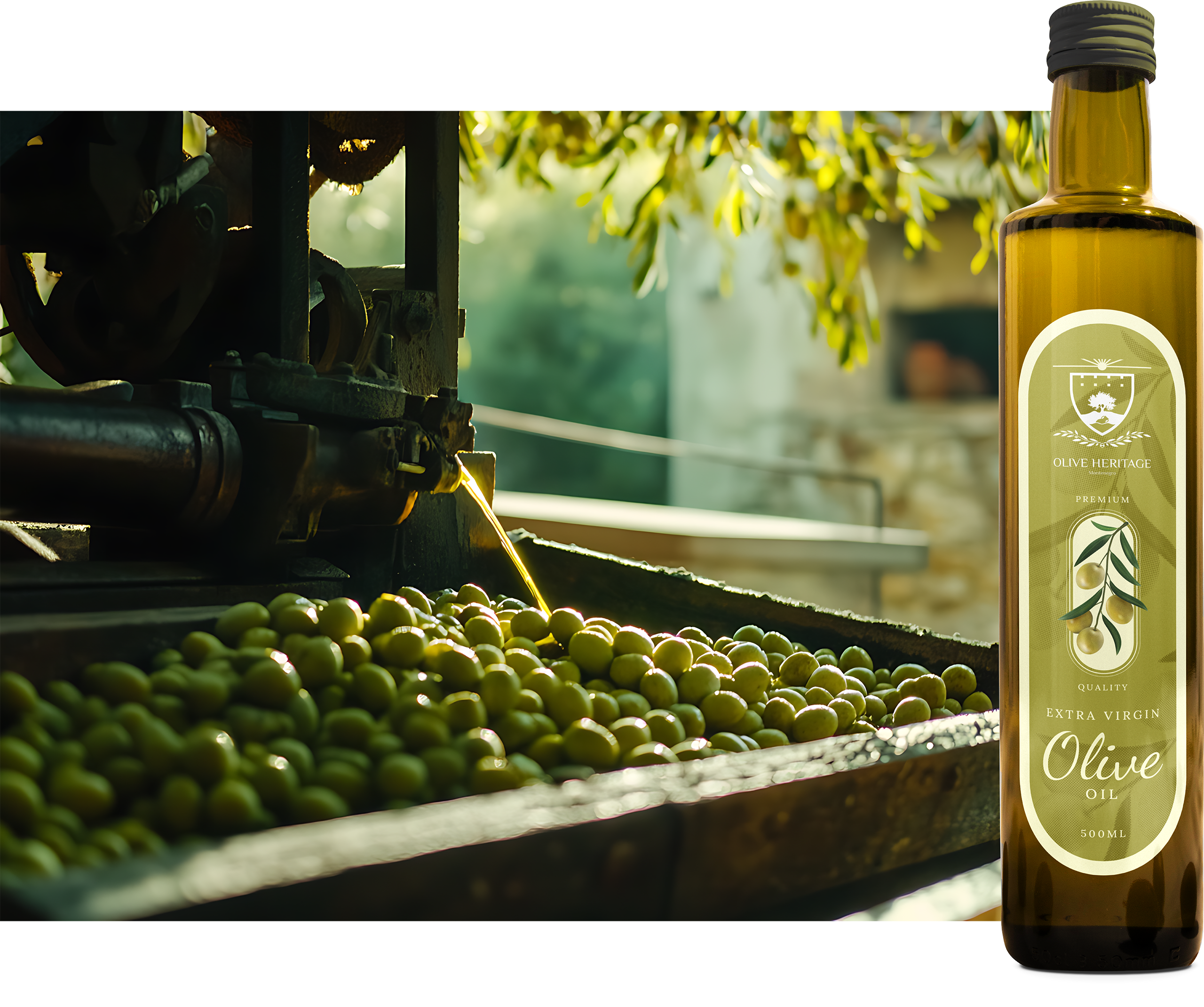 Traditional cold-pressing locks in full aroma, producing a raw, authentic Mediterranean oil.